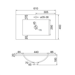 - Aira, kúpeľňová skrinka s umývadlom z liateho mramoru 61 cm, dub