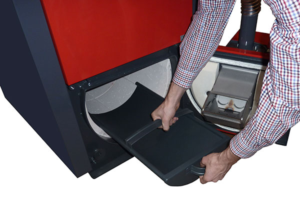 ATMOS D 15 PX automatický kotol na pelety - ukážka čistenia kotla - vyberanie popola pomocou
