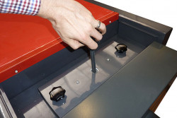 v prednej časti je panels hlavným vypínačom, vypínačom horáku na pelety pre prípad čistenia, prevádzkovým kotlový regulačným termostatom, bezpečnostným termostatom, teplomerom a 6,3A poistkou - dávkovanie paliva je riadené plne automaticky