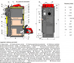 ATMOS DC 18 SP splyňovací kotol na pelety a drevo - popis a rozmery.