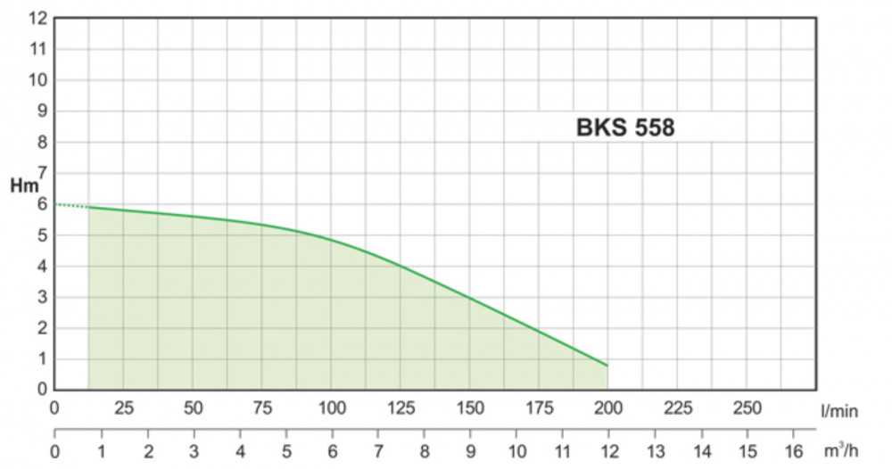 - maximálny prietok: 200 l/min - 3.333 l/s - 12.0 m3/h.
