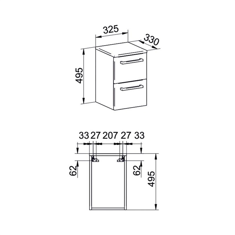 Bino, kúpeľňová skrinka, spodná 325x495x330 mm, závesná, 2 zásuvky, Multidecor, Biela Arctic
