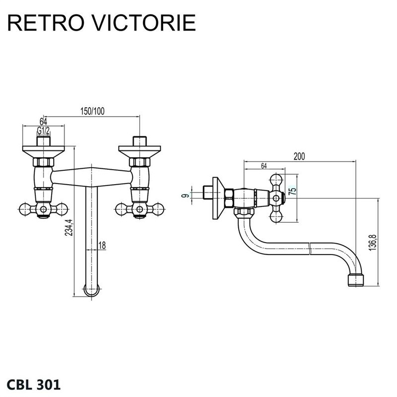 Táto drezová nástenná batéria patrí do série dvojručkových vodovodných batérií Retro Viktorie, ktorá sa vyznačuje zaujímavým dizajnom a masívnym prevedením, vr. príslušenstva. Séria Retro Viktorie vás ohromí svojím elegantným retro vzhľadom, dlhou životnosťou a kvalitnou povrchovou úpravou. Batéria má krátky chod ovládacie hlavice, k plnému otvoreniu stačí otočenie o 90 °.