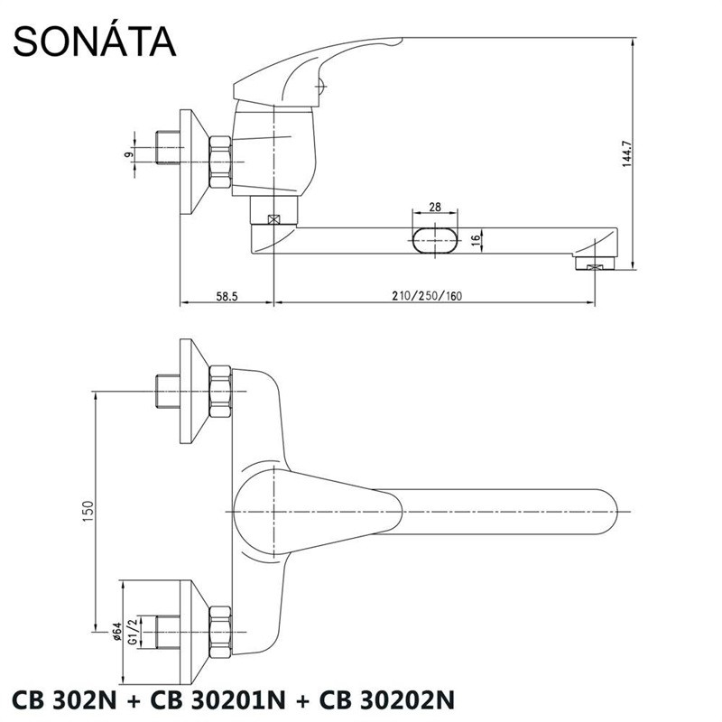 Táto drezová nástenná batéria patrí do radu vodovodných batérií Sonáta, ktorá sa vyznačuje robustným vzhľadom a tichým chodom. Trojkroková kartuš zaručuje jednoduchú obsluhu a znižuje spotrebu vody. Veľmi kvalitná povrchová úprava a spoľahlivosť je samozrejmosťou.