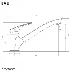 Táto drezová stojanková batéria, patrí do rady vodovodných batérií Eve, ktorá vyniká spojením elegantného tela a tvarovo jednoduché a napriek tomu efektné páky.