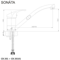 - Drezová stojanková batéria, Sonáta, s ramienkom plochým 170 mm, chróm
