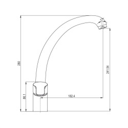 - Drezová stojanková batéria, Zuna, s ramienkom nad pákou, výška 280 mm, chróm