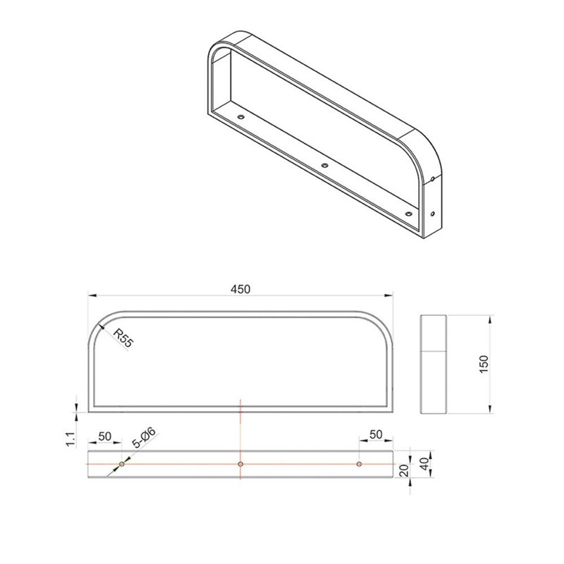 Držiak uterákov čierny pod nábytkovú dosku 450x150x40 mm