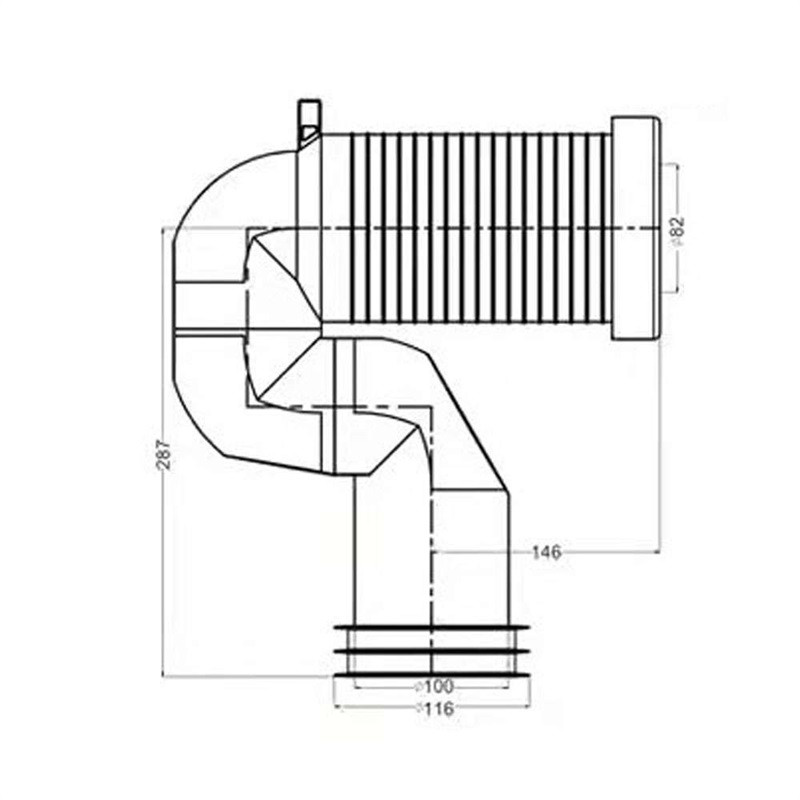 Koleno slúži pre napojenie VARIO WC na odpadové potrubie. Koleno je vyrobené z polypropylénu s gumovým tesnením.
