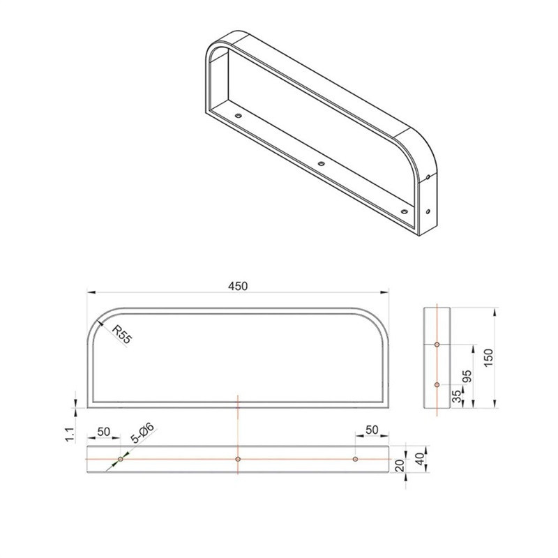 Konzola čierna pod nábytkovú dosku 450x150x40 mm
