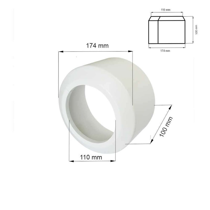 Krycie rozeta vysoká, delená slúži na zakrytie prechodu WC pripojovacieho kusu do steny alebo podlahy v ťažko dostupných miestach. Rozeta sa skladá z dvoch kusov, možno ju teda inštalovať dodatočne. Vyrobena z polypropylenu.