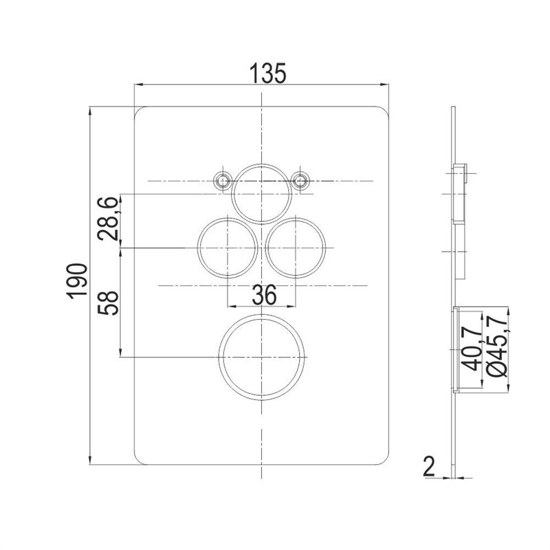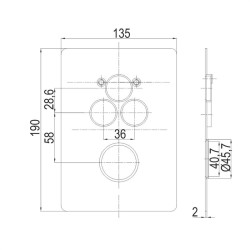 - Kryt hranatý pre 3-cestnú podomietkovú termostatickú batériu, 135 * 190 mm