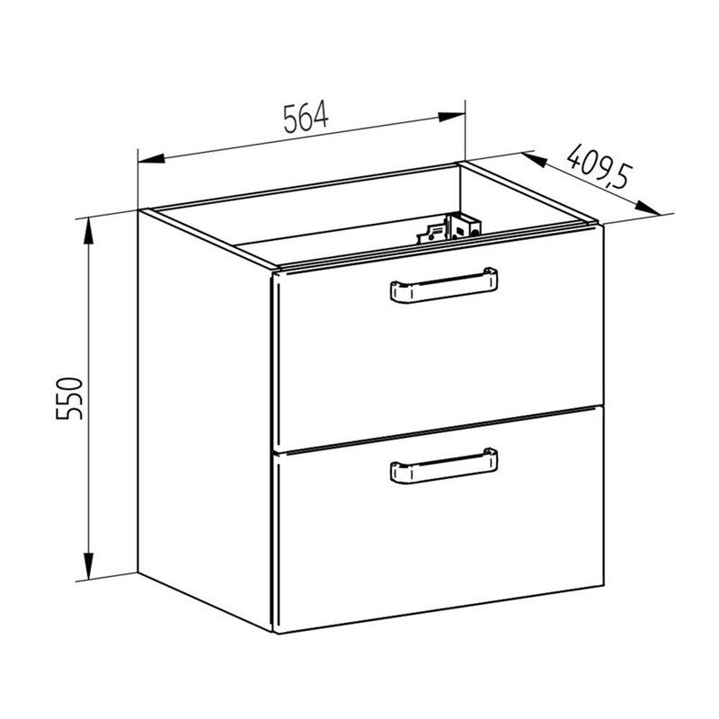 Kúpeľňová skrinka s keramickým umývadlom, 2 zásuvky s kovaním a brzdou, biela, 600x670x420 mm