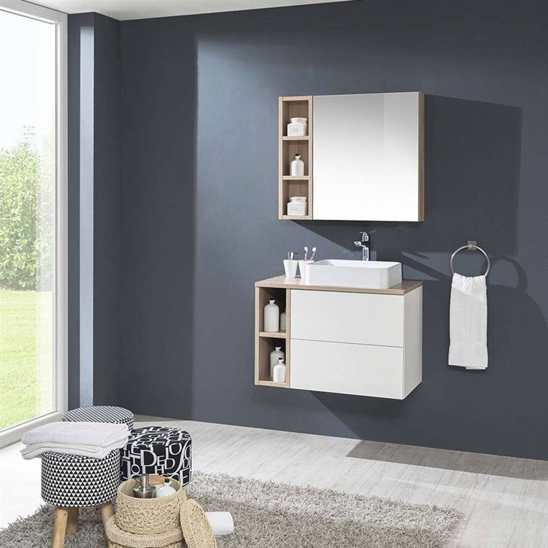 Kúpeľňová galerka 800x700x140 mm, zrkadlová skrinka, 2 x dvierka, dve policové dosky, Multidecor, Chromix strieborný