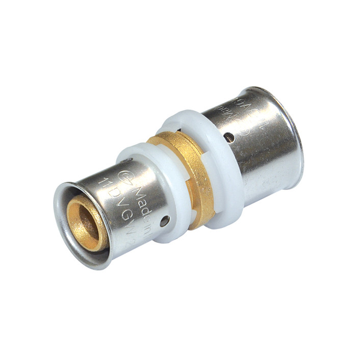 Kvalitná mosadzná lisovacia spojka určená na pevné a spoľahlivé prepojenie plast-hliníkového (PEx/Al/PEx) potrubia. Spojka vytvára trvalé, tesné a odolné spojenie bez potreby dodatočného tesnenia alebo závitových prvkov. Vyrobená z mosadze s povrchovou ochranou proti korózii, ktorá zaručuje dlhú životnosť, vysokú pevnosť a spoľahlivosť spoja. Vhodná pre rozvody vody a kúrenia v domácich aj priemyselných inštaláciách.