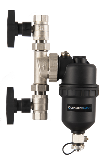 Magnetický filter QUADROMAG 3/4" je určený na ochranu vykurovacích systémov pred magnetickými a nemagnetickými nečistotami, ako sú magnetit, kal, korózia a vodný kameň. Vďaka silnému neodýmovému magnetu s intenzitou 12?000 Gauss efektívne zachytáva škodlivé častice, čím predlžuje životnosť kotlov, čerpadiel a výmenníkov tepla. Univerzálne pripojenie umožňuje zvislú aj horizontálnu inštaláciu, čo zjednodušuje montáž v rôznych typoch systémov.