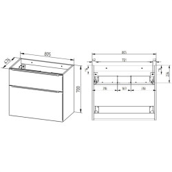 - Mailo, kúpeľňová skrinka, dub, 2 zásuvky, 810x580x458 mm