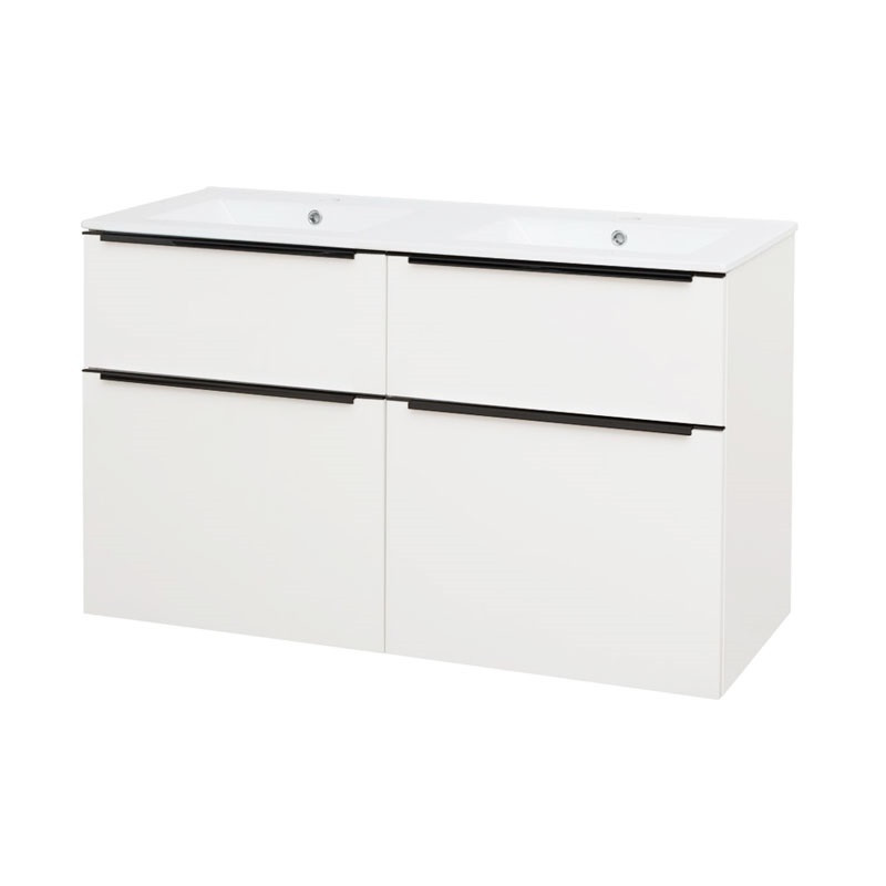 Mailo, kúpeľňová skrinka s keramickým umývadlom 121 cm, biela