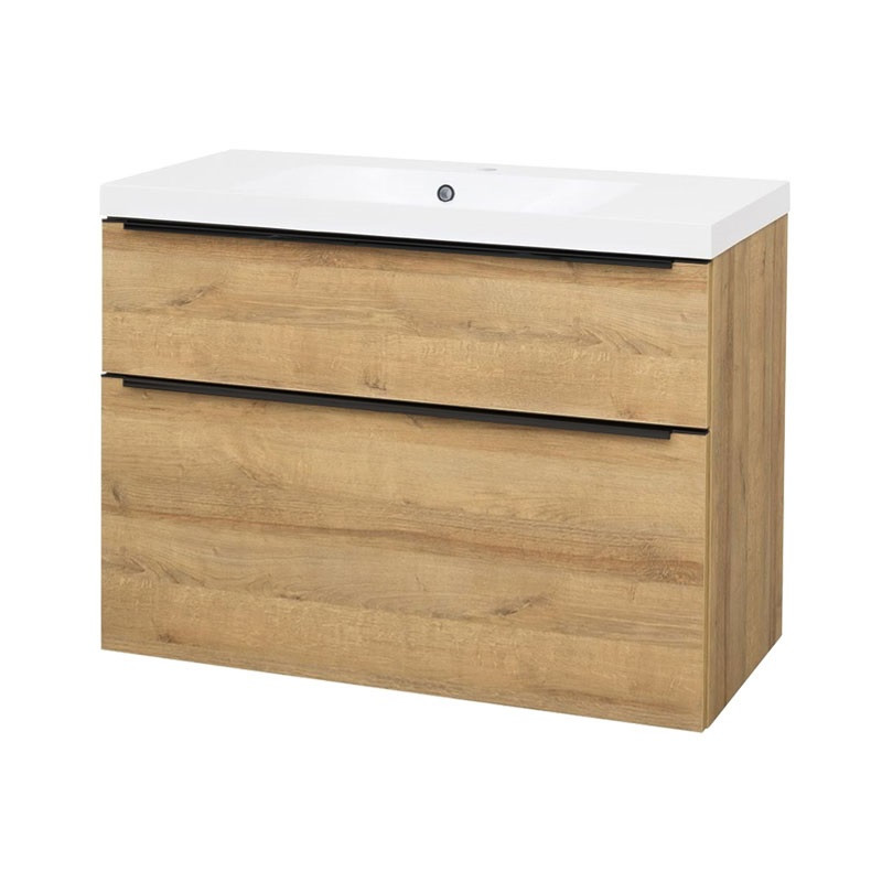 - Mailo, kúpeľňová skrinka s umývadlom z liateho mramoru 101 cm, dub