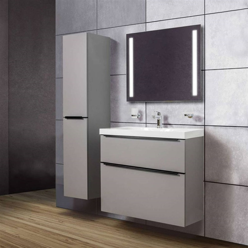 Mailo, kúpeľňová skrinka s umývadlom z liateho mramoru, 610x750x476 mm, spodná, biela lesk, 2 zásuvky.