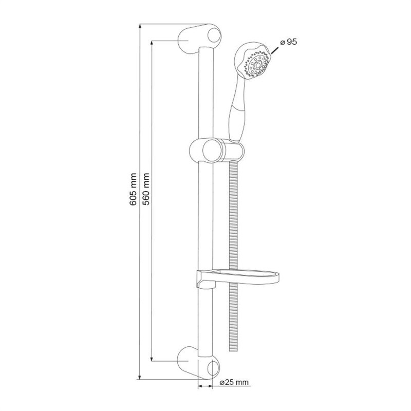 Sprchová súprava sa vyznačuje moderným dizajnom, vysokou variabilitou a predovšetkým umožňuje takmer ľubovoľnú kombináciu s príslušenstvom sprchového programu. Sprchový set obsahuje päťpolohovú ručnú sprchovú hlavicu, nastaviteľný držiak, dvouzámkovú nerezovú pripojovaciu hadicu 150 cm a mydelničku.