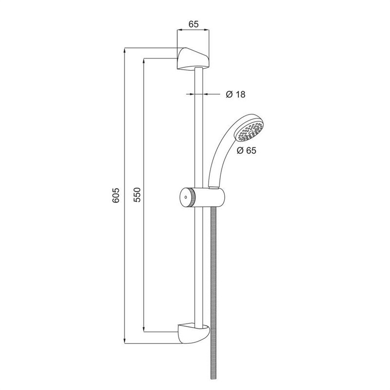 Sprchový set obsahuje jednopolohovú ručnú sprchovú hlavicu, nastaviteľný držiak a sprchovú hadicu s dĺžkou 150 cm.