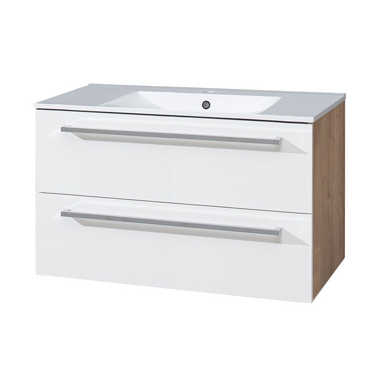 - Mereo Kúpeľňová skrinka s keramickým umývadlom 100 cm, biela/dub