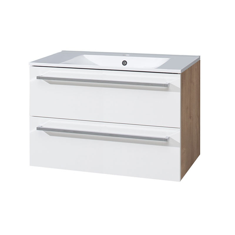 - Mereo Kúpeľňová skrinka s keramickým umývadlom 80 cm, biela/dub