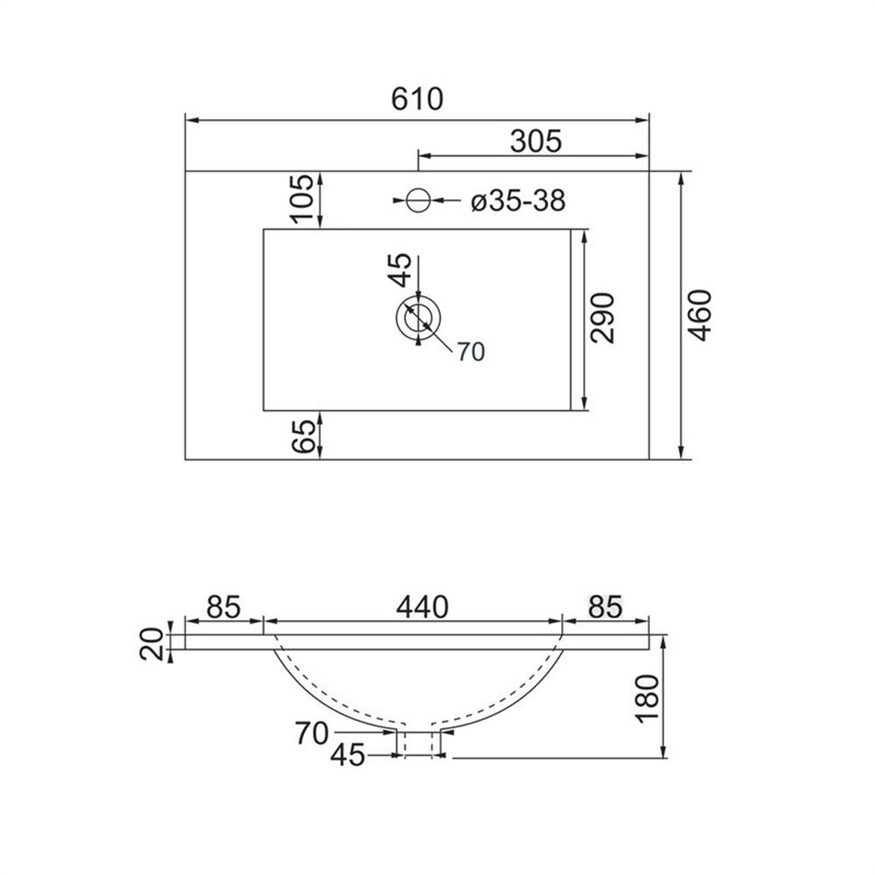 Umývadlo z liateho mramoru je ošetrené povrchovou úpravou Evermite. Jedná sa o polymérový základ ktorá činí umývadlo odolnejšie, vytvára ochrannú bariéru. Tá minimalizuje riziko poškodenia spôsobené používaním. Vďaka úprave Evermite je povrch o 40% odolnejšia voči oderu. Hladký povrch a nízka priepustnosť zabraňuje usadzovaniu vodného kameňa a mydlových zvyškov. Povrch vždy vyčistíte od stôp kávy a čaju, nezažloutne. Povrch je odolný aj voči silným chemikáliám. Umývadlo je určené pre nábytok, nie je možné inštalovať samostatne na stenu. Zápustné umývadlá podporia moderný a elegantný vzhľad každej kúpeľne a doladia tak celkový dizajn interiéru. Umývadlá možno osadiť do dosky aj vo viacerých kusoch vedľa seba.