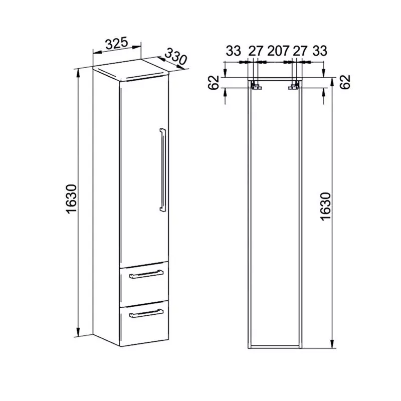 Jednoduchosť, efektívnosť, elegancia. To sú hlavné spoločné menovatele kúpeľňového nábytku MEREO, ktorý ozdobí každú kúpeľňu. Vďaka kombinácii inovácií a spoľahlivého prístupu, na ktorom si popredný slovenský výrobca zakladá, potom vzniká kvalitný a zároveň veľmi moderný nábytok. Farebné kombinácie biely lesk, biely lesk + dub alebo biely lesk + Schoko zaisťujú, že bude nábytok ladiť do každého typu kúpeľne. Horná časť tejto závesné skrinky obsahuje dve poličky a jej dvierka sú vybavené brzdou dovierania. Spodná časť potom obsahuje dve plnovýsuvné zásuvky so samozatváracími pojazdmi a tlmením Strong. Skrinka sa dodáva v zloženom stave a jej rozmer je 325 x 1630 x 330 mm.