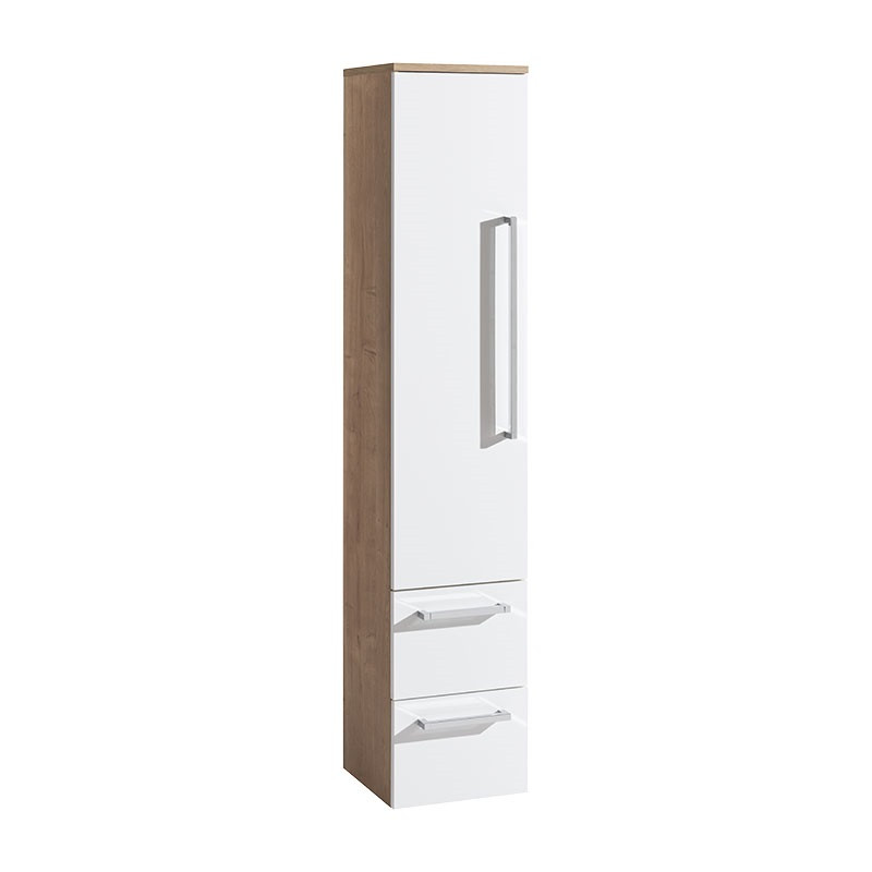 - Mereo Kúpeľňová skrinka vysoká závesná, bez nožičiek, ľavá, biela/dub