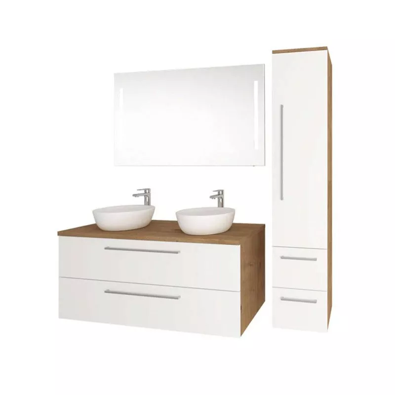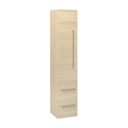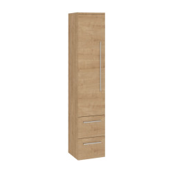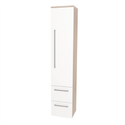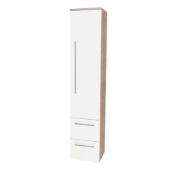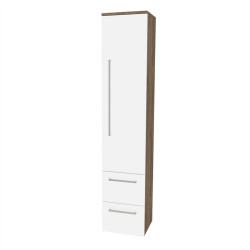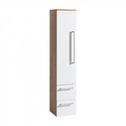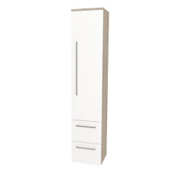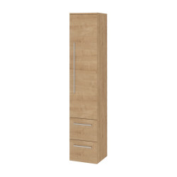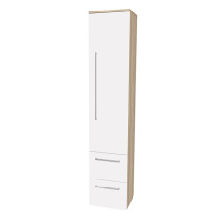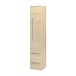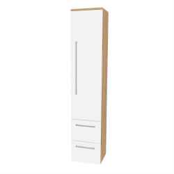 - Mereo Kúpeľňová skrinka vysoká závesná, bez nožičiek, pravá, biela/dub