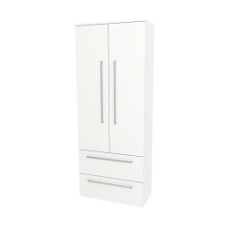 Jednoduchosť, efektívnosť, elegancia. To sú hlavné spoločné menovatele kúpeľňového nábytku MEREO, ktorý ozdobí každú kúpeľňu. Vďaka kombinácii inovácií a spoľahlivého prístupu, na ktorom si popredný slovenský výrobca zakladá, potom vzniká kvalitný a zároveň veľmi moderný nábytok. Farebné kombinácie biely lesk, biely lesk + dub alebo biely lesk + Schoko zaisťujú, že bude nábytok ladiť do každého typu kúpeľne. Horná časť tejto závesné skrinky obsahuje dve poličky a jej dvierka sú vybavené brzdou dovierania. Spodná časť potom obsahuje dve plnovýsuvné zásuvky so samozatváracími pojazdmi a tlmením Strong. Skrinka sa dodáva v zloženom stave a jej rozmer je 650 x 1630 x 330 mm.