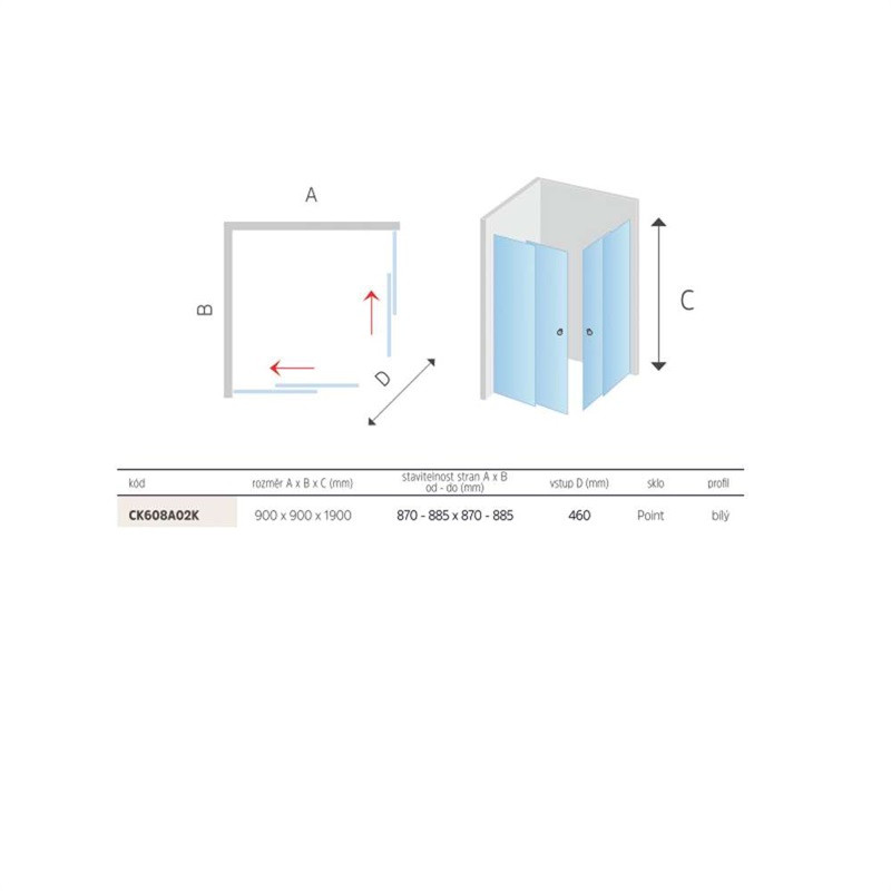 - Mereo sprchovací kút LIMA štvorcový 90 cm, biely, sklo Point