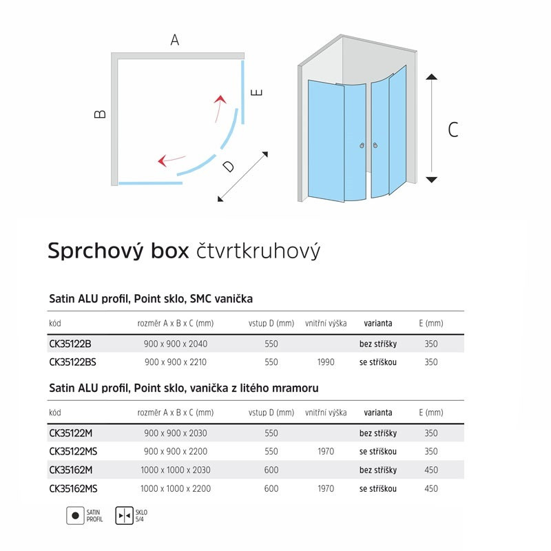 Sprchový box vnáša do ekonomickej triedy nový rozmer kvality. Hrúbka bezpečnostného skla je 5/4 mm. Sklo je dokonale utesnené silikónovými lištami. Sprchový kút je osadený posuvnými dverami, ktoré majú kvalitné pojazdy s možnosťou perfektného nastavenia. Dorazy zaisťujú minimálne nárazy pri otváraní a zatváraní sprchovacieho kúta.
