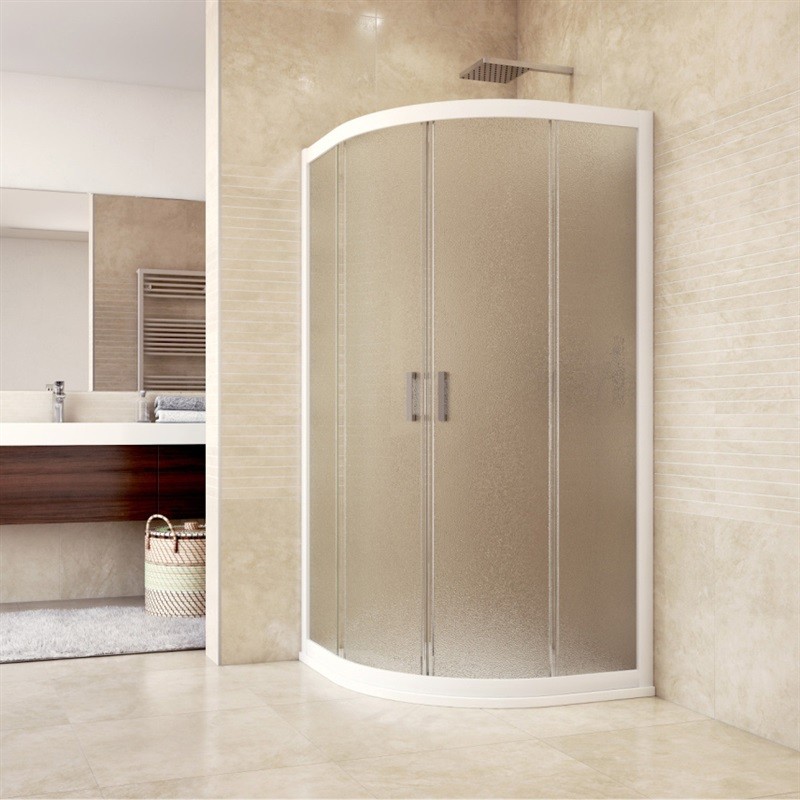- Mereo sprchový kút Mistica štvrťkruhový 90 cm, R550, biely, sklo Grape