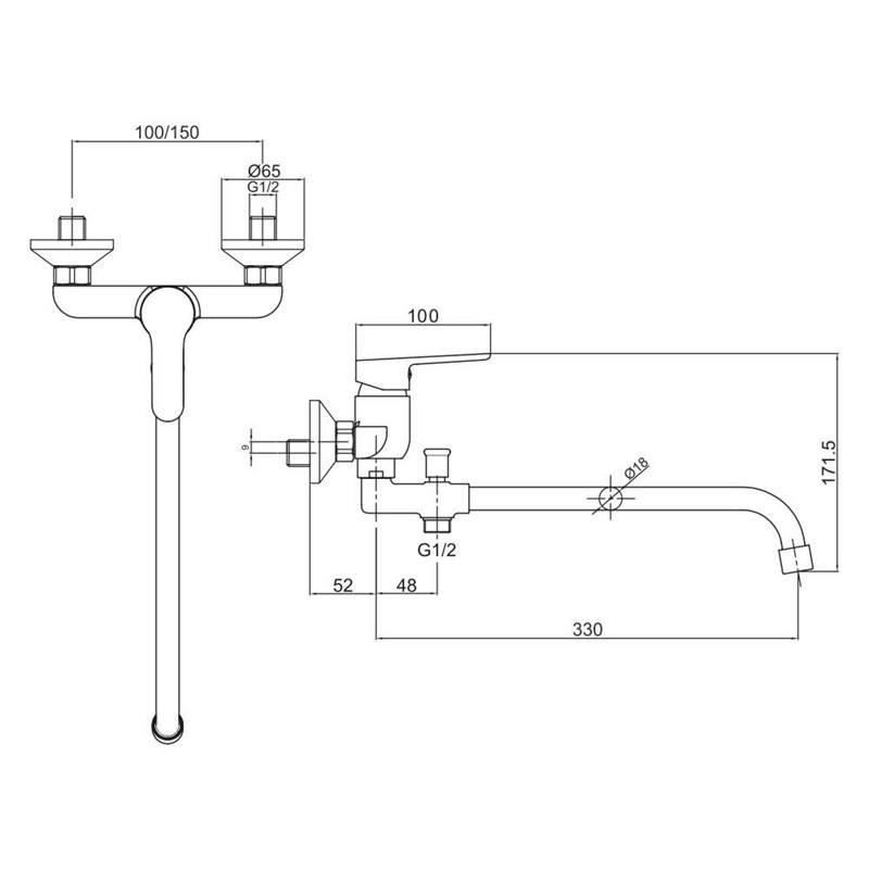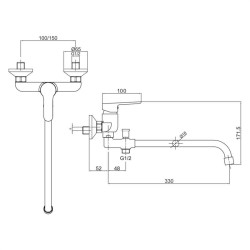 - Nástenná batéria do byt. jadra, Zuna, 150 mm, s ramienkom o 18 mm - 330 mm, bez prísl.