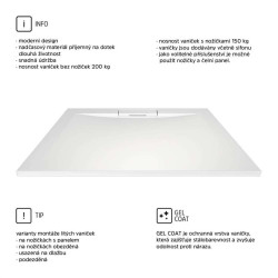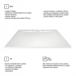 Sprchové vaničky z liateho mramoru sú opatrené ochrannou vrstvou Gelcoat, ktorá zaisťuje stálofarebnosť a odolnosť proti nárazu.