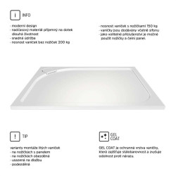 Sprchové vaničky z liateho mramoru sú opatrené ochrannou vrstvou Gelcoat, ktorá zaisťuje stálofarebnosť a odolnosť proti nárazu.