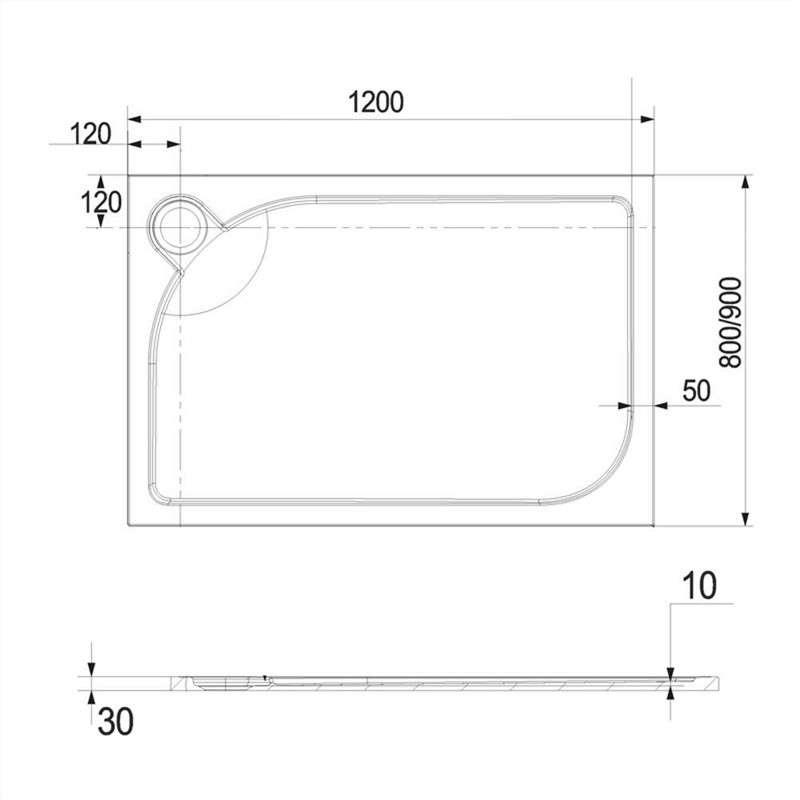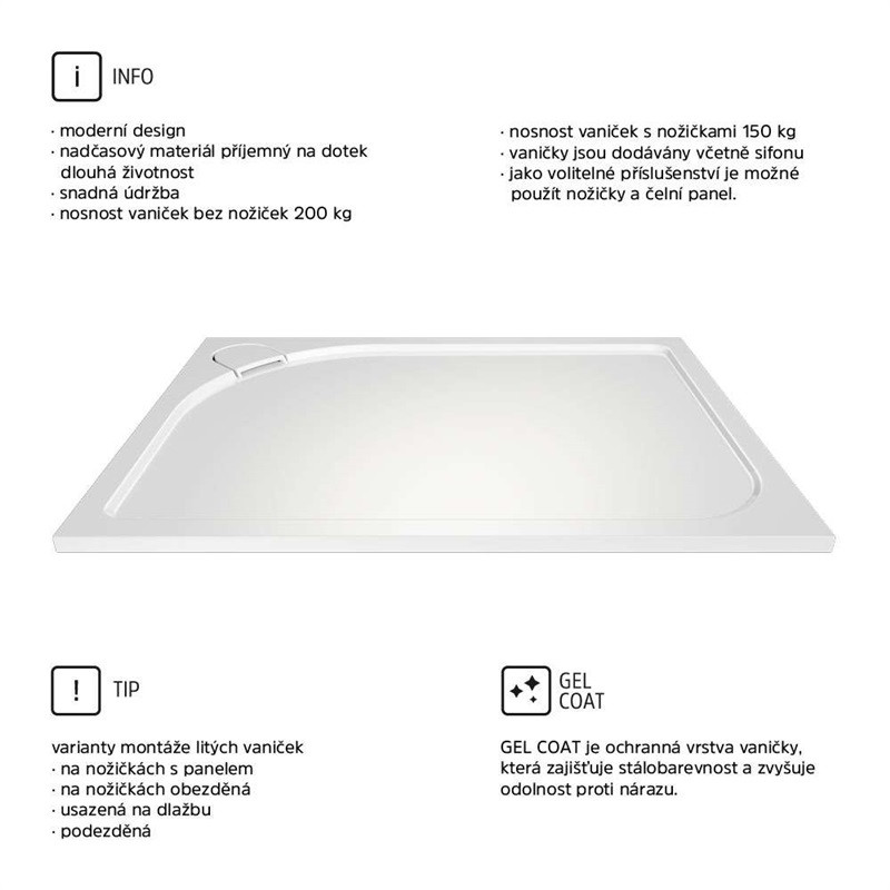 - Obdĺžniková sprchová vanička s obl. krytom sifónu, 120x80x3 cm, vr. sif., bez nožičiek, liaty mramor