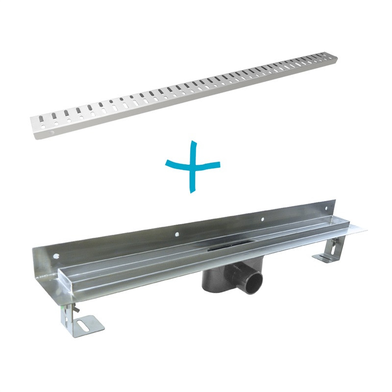Odtokový sprchovací žľab 700 x 55 mm k stene, vr. roštu Wave, nerez