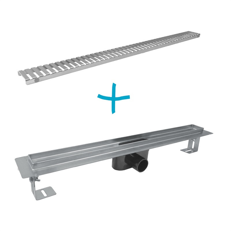 - Odtokový sprchovací žľab do priestoru,700x55mm, vr. roštu Strip, nerez