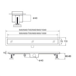 Odtokový sprchový žľab, 50x7 cm, nerez, vr. roštu TILE a nerezového vnútra sifónu.