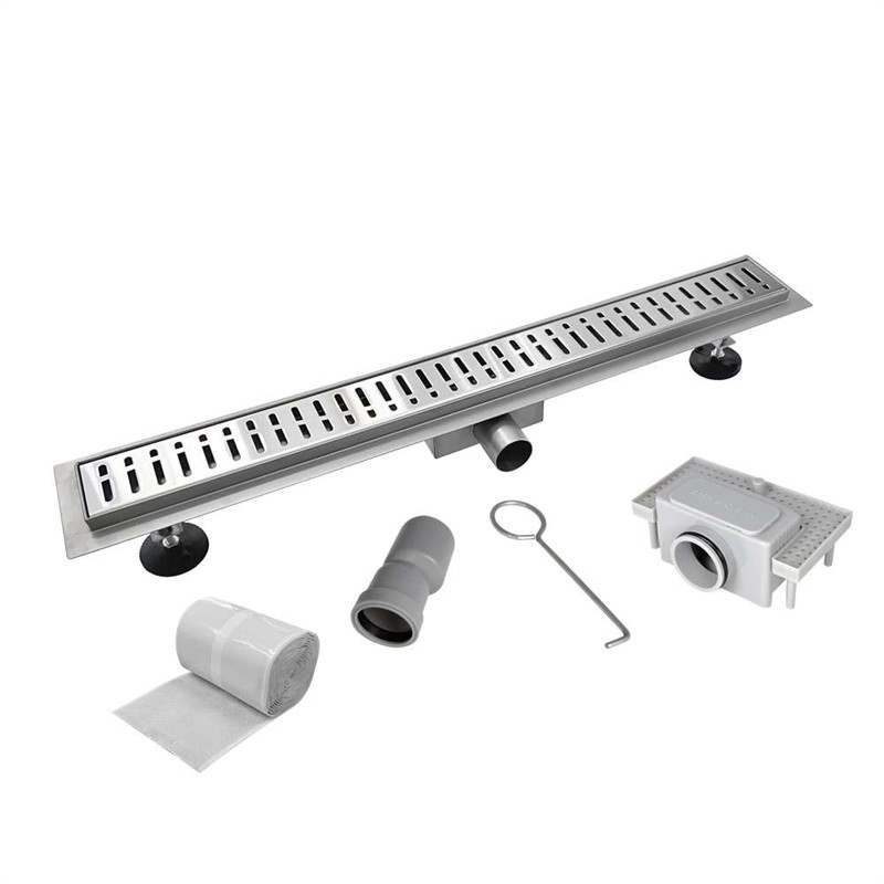 Odtokový žľab, 60x7 cm, nerez, vr. roštu WAVE a plastového vnútra sifónu