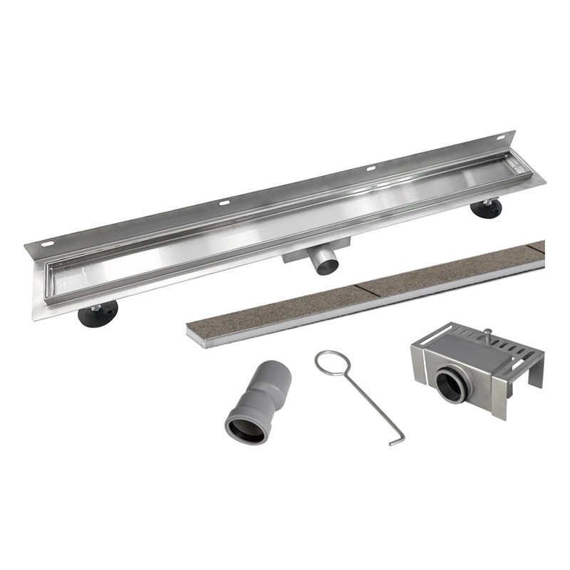 Odtokový žľab k stene, 80x7 cm, nerez, vr. roštu TILE a nerezového vnútra sifónu