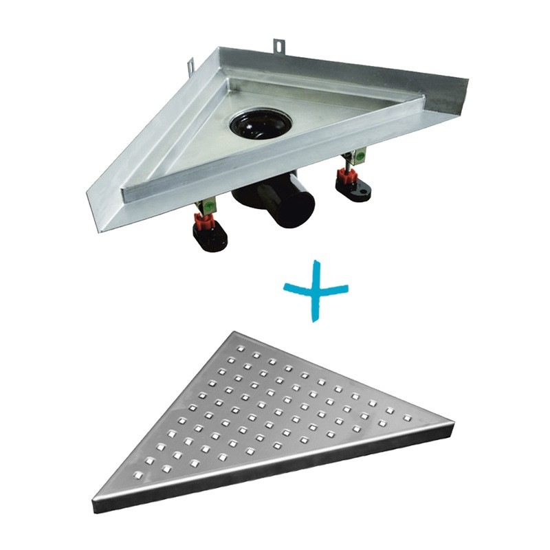 Odtokový sprchový žľab rohový, 21x21 cm, vr. roštu Square, nerez