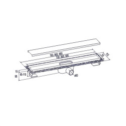 Žľab sa dodáva bez roštu, ktorý je možné dokúpiť samostatne v dizajne Line, Square, Circle alebo Tile.