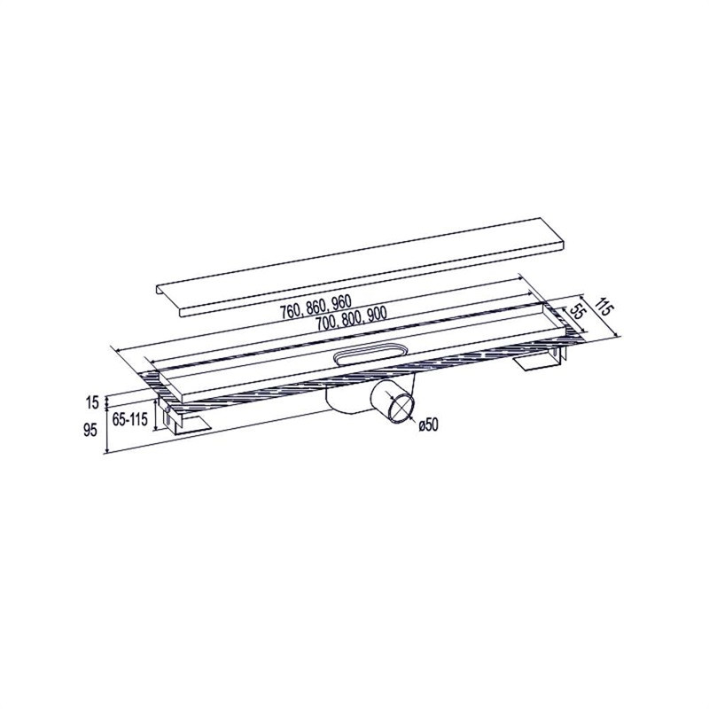 - Odtokový sprchový žľab Slim, bez roštu, 80x5,5 cm, nerez