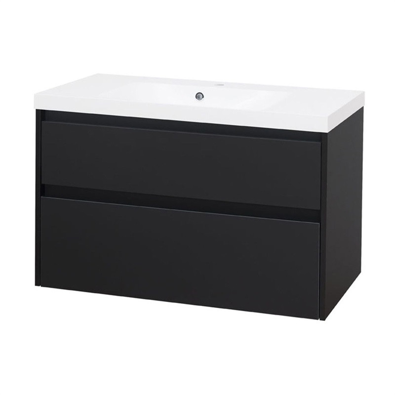 - Opto, kúpeľňová skrink, umývadlo z liatého mramoru, čierna, 2 zásuvky, 1010x580x458 mm