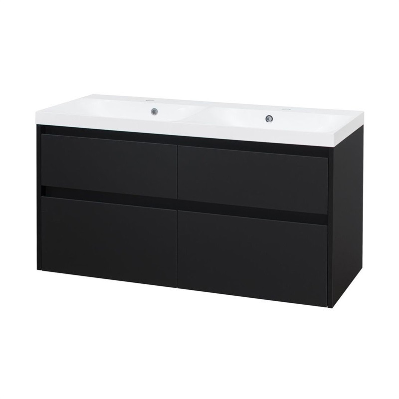 - Opto, kúpeľňová skrink, umývadlo z liatého mramoru, čierna, 2 zásuvky, 1210x580x458 mm